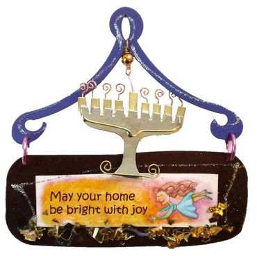 The Art Gallery business was very different in the early 80s (before the revolution of computers, digital printing and arts licensing). Many Art galleries came to order my little flying creatures known as “Short Stories” (later renamed to Fanciful Flights). I also sold my mobiles, mirrors, picture frames, and wall sculptures. Susan Boni, of Frames of Mine gallery in New Jersey, loved my work so much that she decided to commission my first menorah. Not having known much about the Jewish culture or religion, I proceeded to interview everyone in my path about the Hanukkah season. I was thankful that my librarian, Miriam Hyman, and her Rabbi, were generous to take me under their guidance. I was very nervous about creating a religious object, but they reminded me that Hanukah is the Celebration of Light.