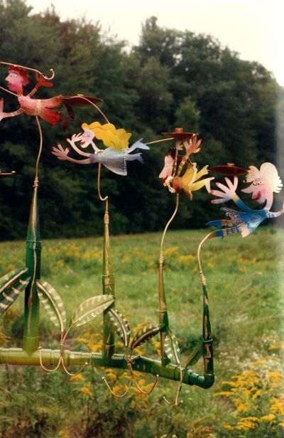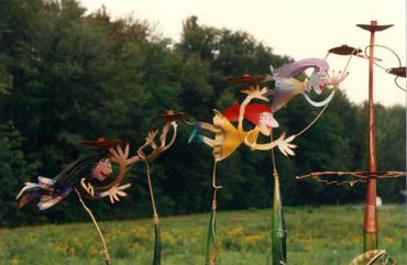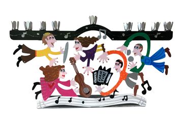 About that same year I had participated in another tradeshow show called "Art Expo." My girlfriend Debra Porter represented an artist named Agam. He told me that the earliest menorahs were made from olive branches. I Immediately wondered what they looked like, so asked my uncle Rowe - a Florist in Scarsdale, if he could shed some light. I will never forget this; he sent me a giant box of olive branches by UPS! I proceeded to adorn the menorah with metal renditions of them. Finally, I added the candle cups and a swarm of my flying people - dubbing it: "The Family Menorah.” I called Susan to warn her that it was a little large, but I was going to bring it to the show regardless, whether she wanted it or not!
